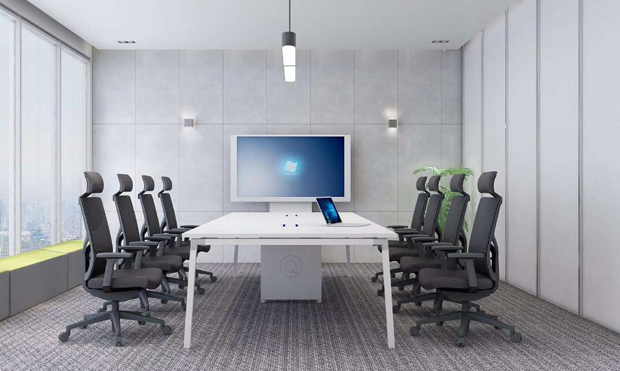 各類辦公室家具的色彩,除了與背景墻的色彩協(xié)調(diào)外,還應(yīng)考慮整體的搭配效果。就拿會議桌的顏色來說,一般會議桌的顏色要選擇大氣典雅,給人以莊重的深棕色、深灰、朱紅、暖白等等。