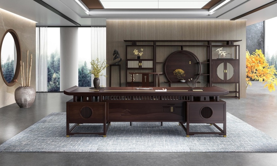 當前位置  高管桌系列新中式高管桌憶江南系列高端新中式大班臺
